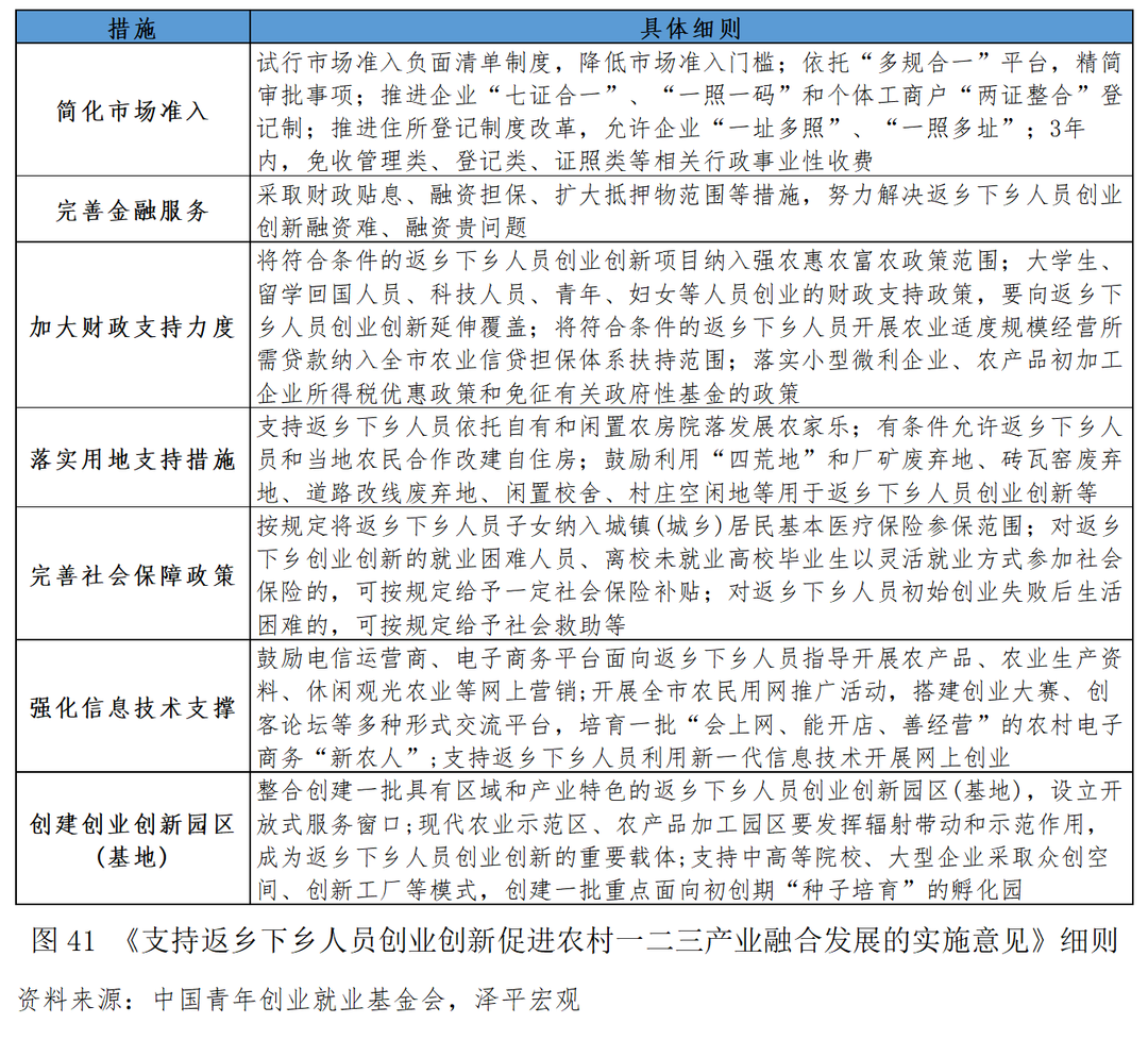 在创业环境、财政支持、金融服务、用地支持、人才培养五方面措施支持青年返乡创业,吸引更多青年返乡,推动当地乡村振兴。2021 年郑州市出台《郑州市进一步支持返乡入乡创业实施方案》,在创业环境、财政支持、金融服务、用地支持、人才培养五方面共同支持青年和大众返乡创业。从财政支持看,对符合条件的返乡下乡创业人员提供创业担保贷款, 最高额度不超过 35 万元, 对高校毕业生不超过 40 万元。在人才培养方面,持续实施返乡创业培训行动计划, 将有培训意愿的返乡创业者全部纳入创业培训范围, 符合条件的给予 200—1500 元的创业培训补贴;对返乡入乡创业企业招用的中级职称、本科学历、技师及相应层次以上急需紧缺人才, 郑州市各区县 (市) 按人才引进政策给予奖励、生活补助、住房补贴等支持, 并在项目申报、职称评审以及各类重点人才选拔培养奖励项目等方面予以倾斜。